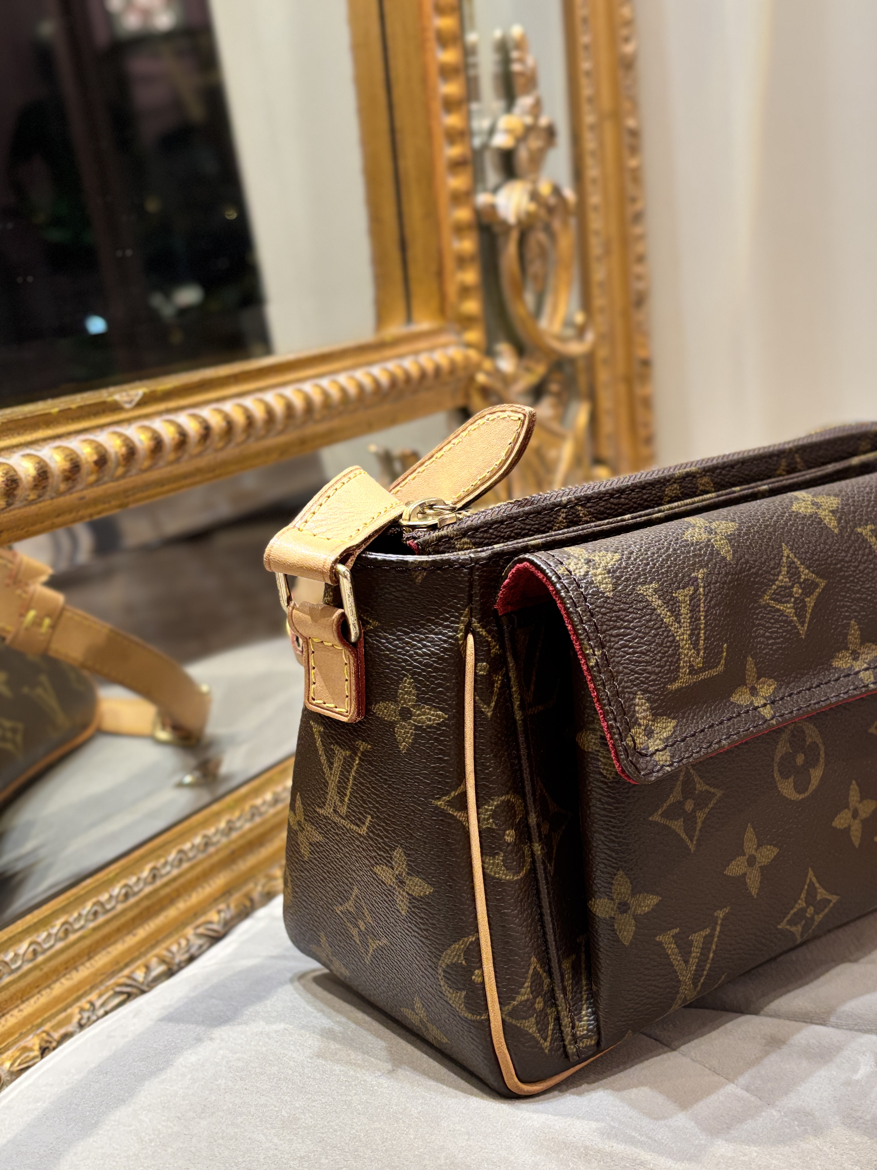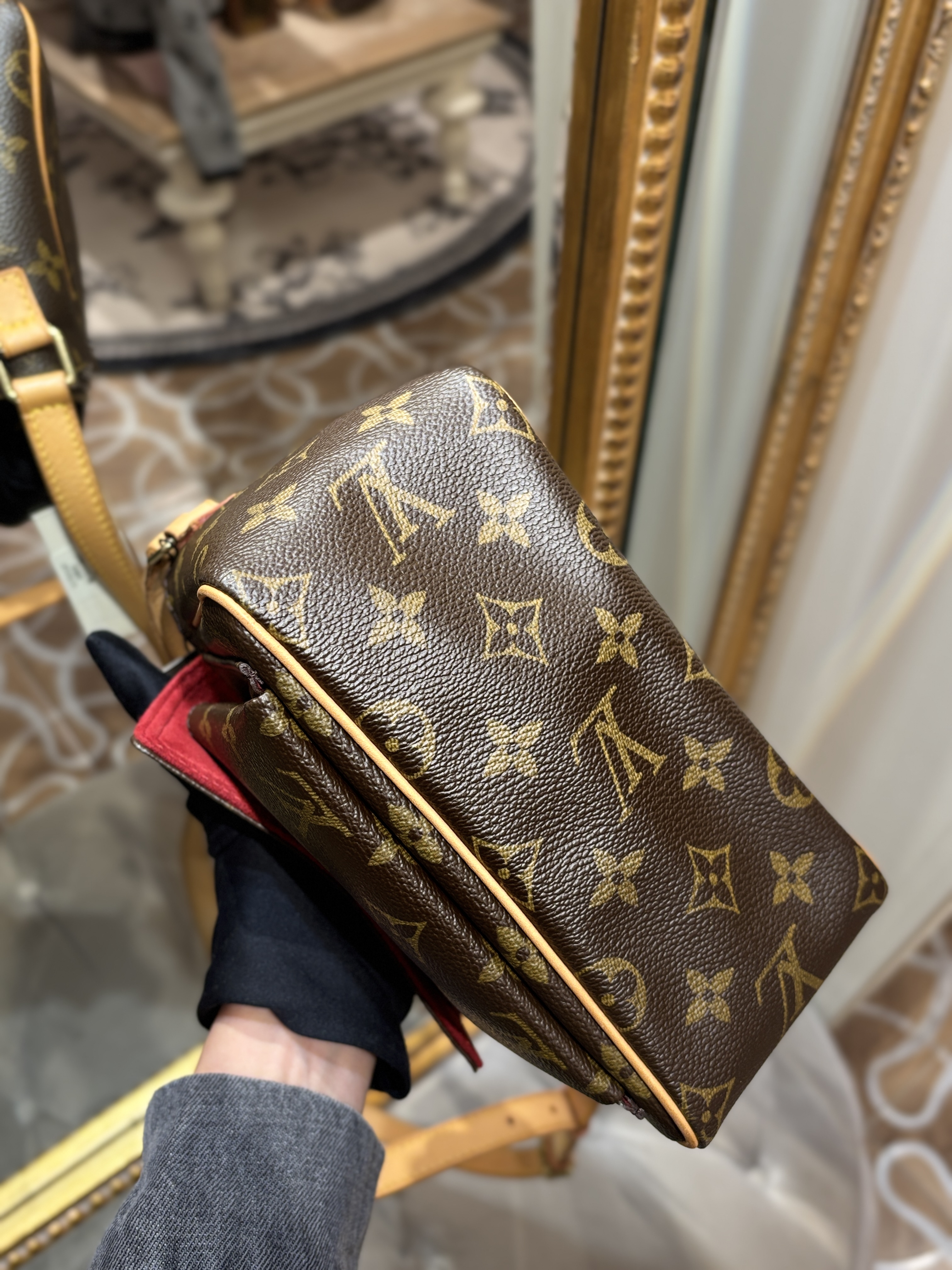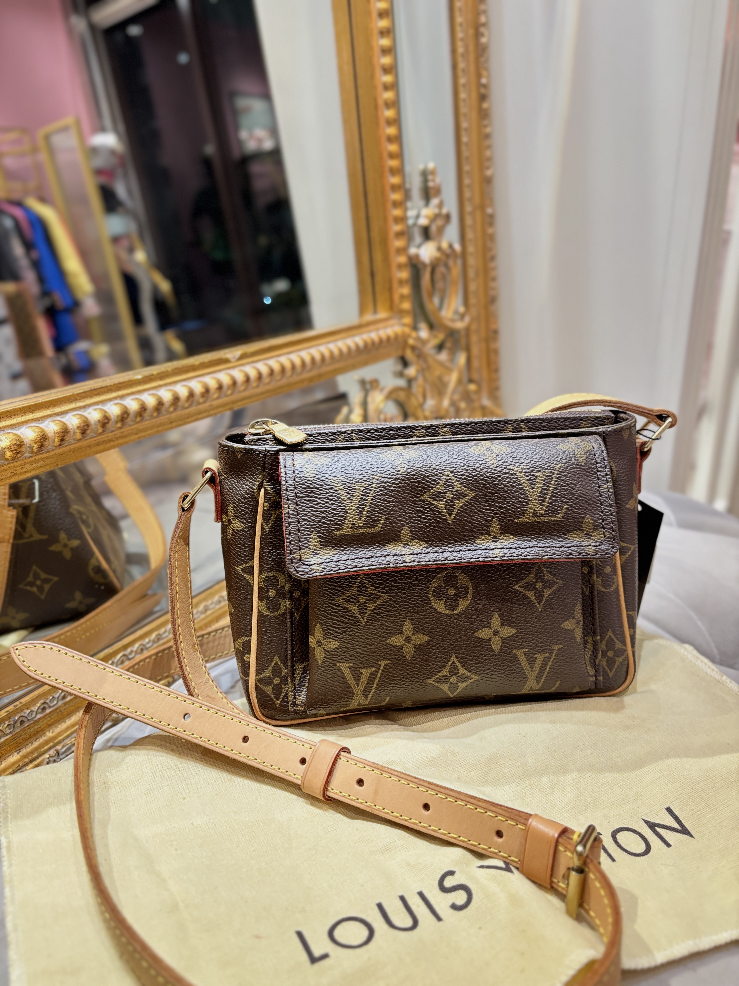 LV 奶咖緞面暗紋hobo