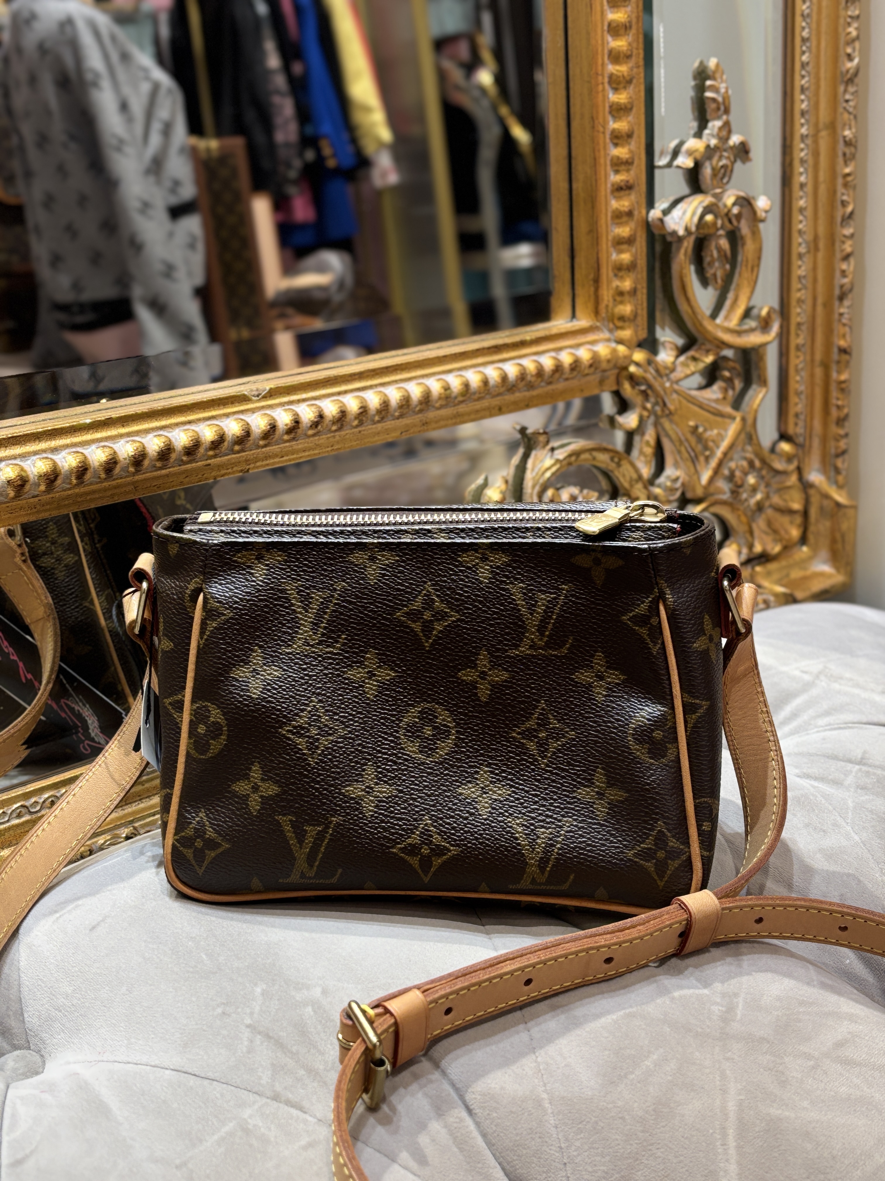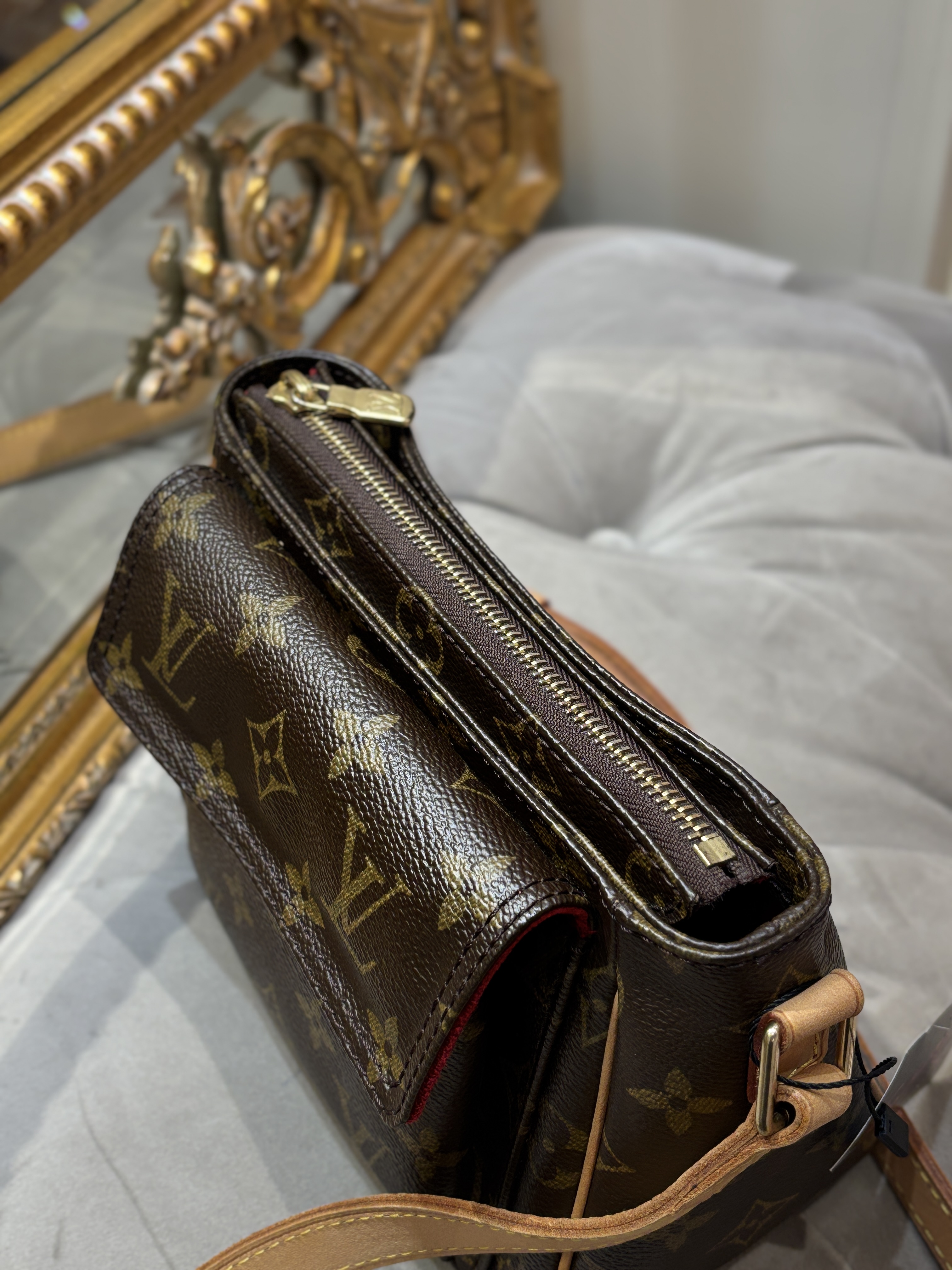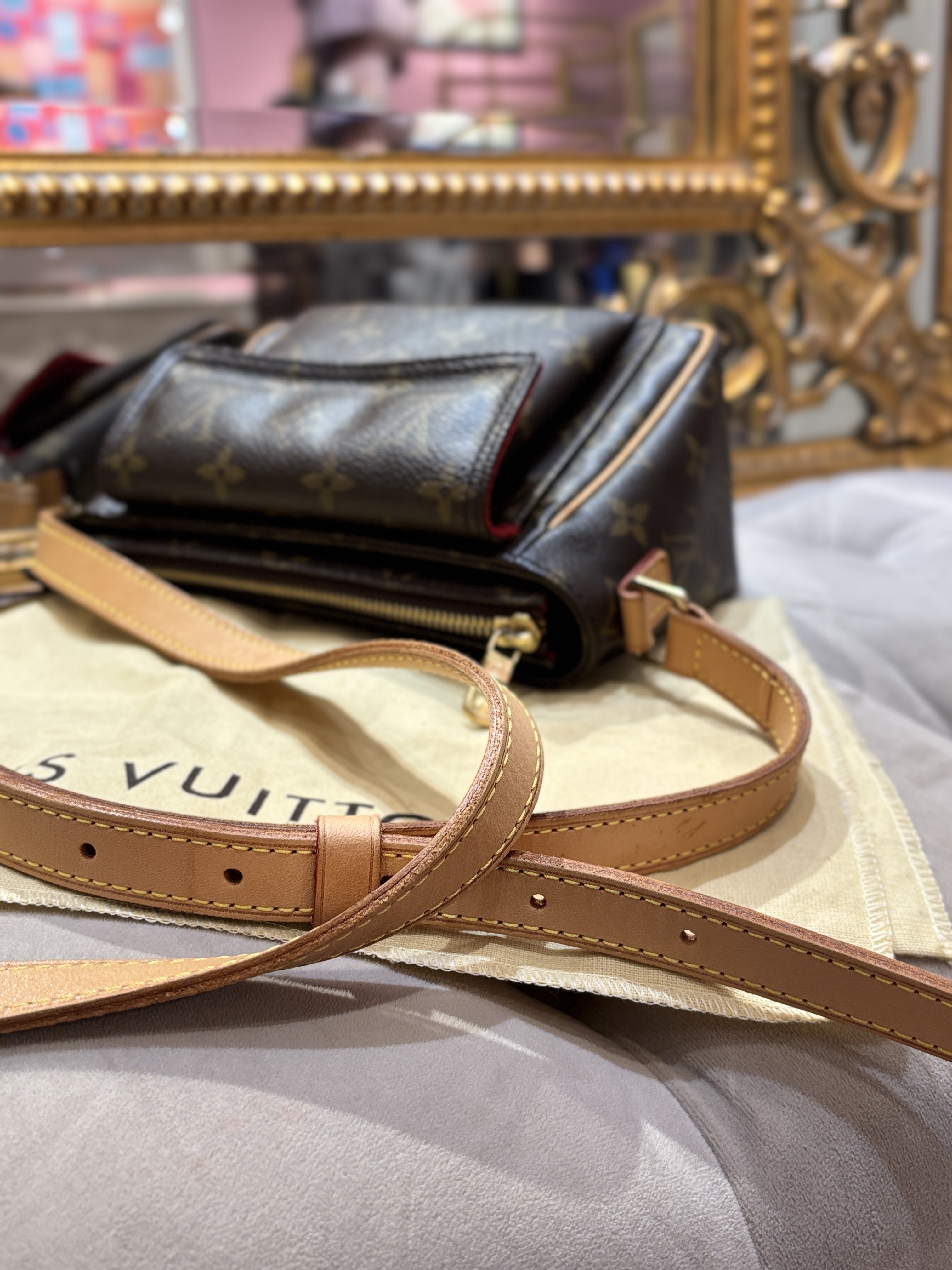 LV 奶咖緞面暗紋hobo